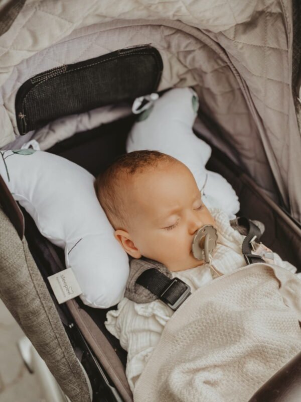 Sleeping pillows are not recommended for babies under 6 months of age. A safe sleep is one in a crib on a medium-firm surface. Pillows are best used during daytime naps and also in a stroller or car seat, which will protect the baby’s head from shocks.